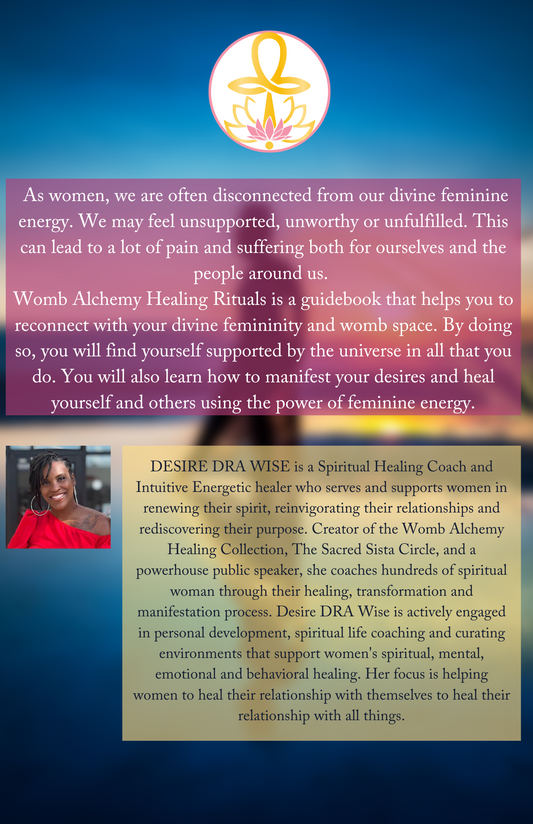 Womb Alchemy Healing Bootcamp guides you through practical, easy to implement spiritual practices and rituals that will support your overall well being as a sacred woman.
